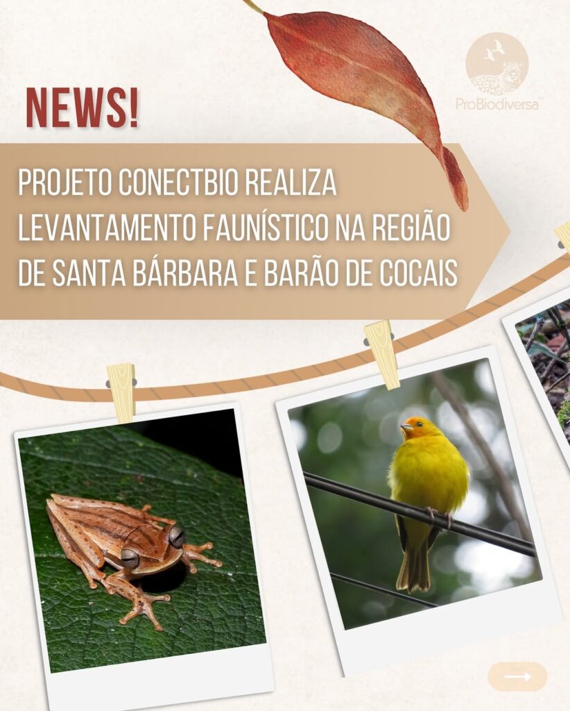 Projeto ConectBio realiza levantamento faunístico na região de Santa Bárbara e Barão de Cocais